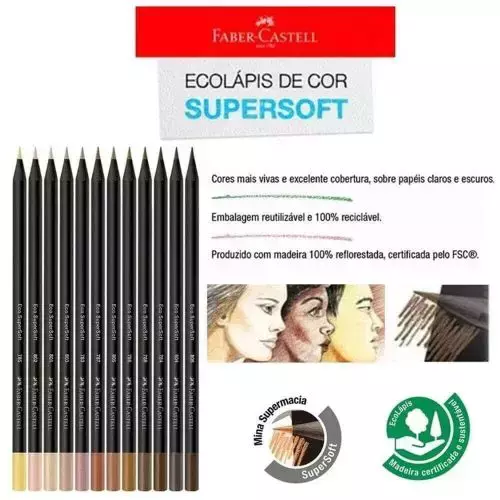 📌 Lápis de Cor Faber-Castell EcoLápis SuperSoft – 12 Tons de Pele (FSC) 🎨🖌️